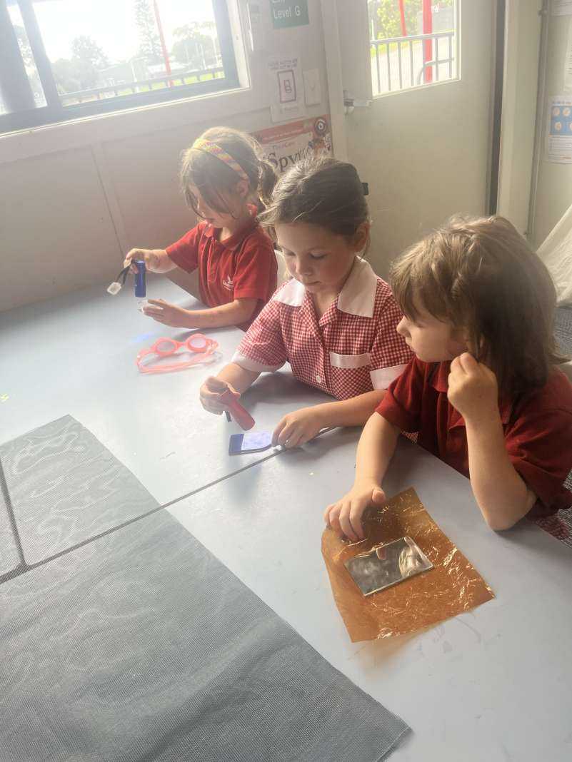 In Year 5/6 students were lucky enough to borrow some educational kits from Science Play Kids. They investigated energy and electricity using energy sticks to find the difference between a conductor and an insulator. They seemed to quite enjoy learning more about coding and circuits while playing with little sensor robots called ‘Ozobots’. They learnt the basic elements of an electric circuit and made one with an attached thaumatrope. Students investigated how light behaves with different materials and the difference between transparent, translucent, and opaque as well as experiments involving reflection, refraction and absorption.